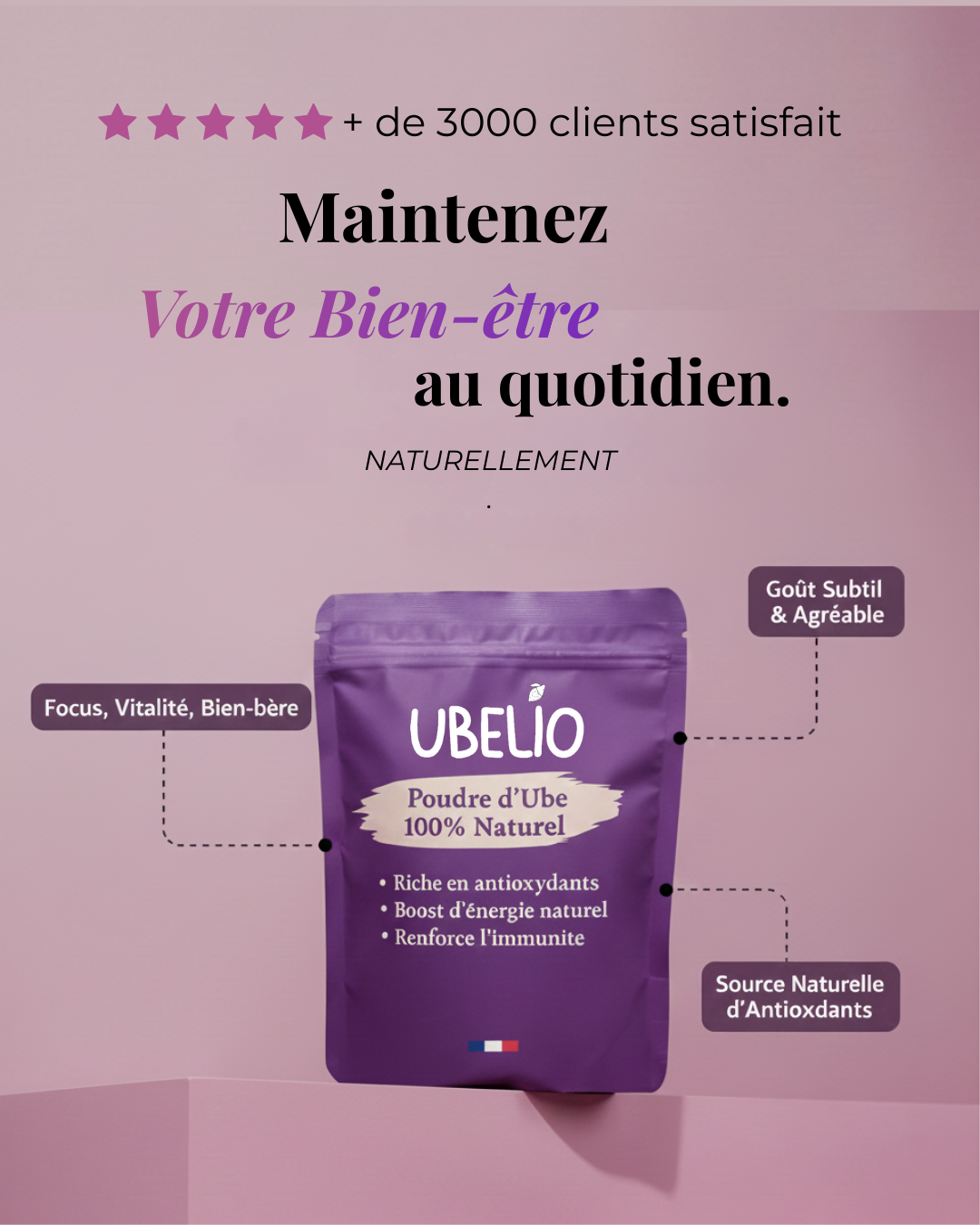 La couleur mauve de l'ube est un véritable indicateur de sa richesse en anthocyanines, des antioxydants puissants qui aident à protéger la peau contre les radicaux libres. Ces composés nourrissent la peau en profondeur, stimulent la production de collagène et combattent les signes du vieillissement. L'ube hydrate, raffermit et redonne à la peau son éclat naturel.